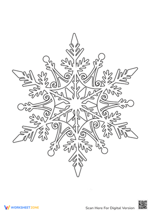 Explore the captivating symmetry of a delicate snowflake with this intricate coloring page. Perfect for a relaxing winter activity.