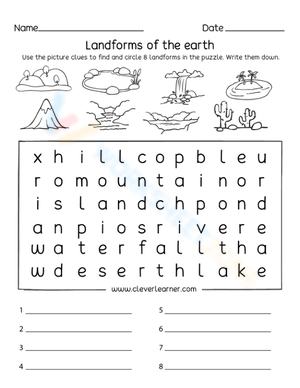 The prominence of a majestic mountain, the expanse of a sea, the roaring waterfall; dazzles the senses. The mere perception of the landforms and bodies of water on the earth leaves one awestruck. Navigate through these major landforms and bodies of water worksheets that give a vivid understanding of the concept to kids.