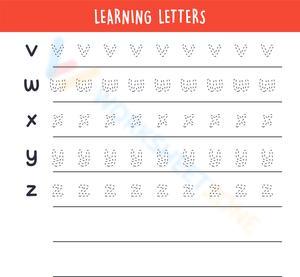 Learn to write letters by tracing dotted outlines, both upper and lowercase.