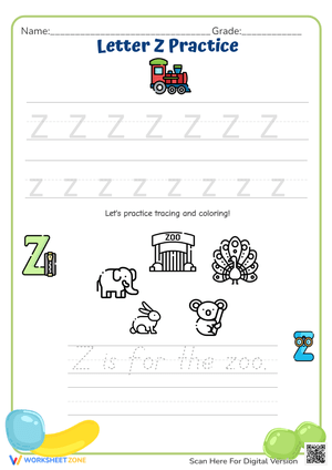 Improve skills with Letter Z Tracing and Recognition Activity with this worksheet. Engaging activities for students. Download and print for free!