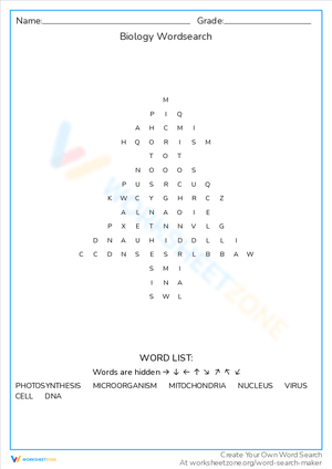 Learn Biology with our word search! Find terms related to life science and organisms. Start your Biology science challenge now!