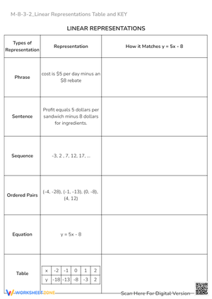 Master linear functions with this sorting representations worksheet. Understand different expressions and enhance algebraic skills. Click here to learn more!