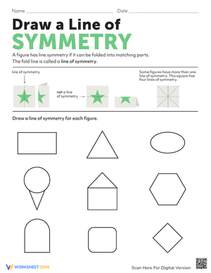 Enhance your understanding of symmetry by drawing lines. This symmetry worksheet helps improve spatial reasoning skills! Learn more now.