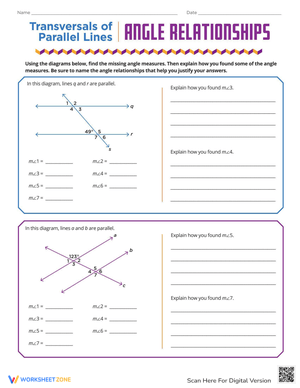 Learn about Parallel Lines and transversals with this worksheet! Understand angle relationships and practice geometry. Try it out today!