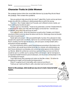 Analyze character traits in 'Little Women' with this helpful worksheet! Explore the personalities and characteristics of the novel's characters. Discover Character Traits Now!
