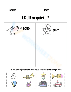 Help kids identify loud and soft sounds with this fun worksheet. Perfect for early learners, focusing on developing sound recognition skills through interactive images.