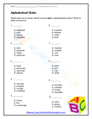 Read each list of words. Which comes last? Write its letter on the line.