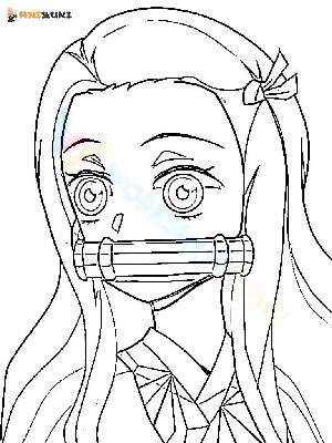 Color Nezuko with various masks! A fun and creative coloring worksheet for fans. Relax and enhance your artistic skills now!
