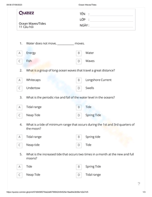 Thank you for your interest in our Ocean! This quiz is perfect for students to learn about and engage in activities around waves, tides, ocean currents