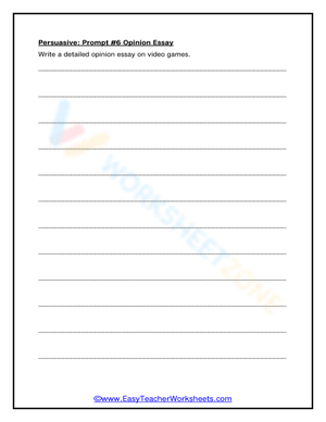 Improve opinion writing skills with our video games-themed worksheet. A great way to develop critical thinking and writing. Start now.
