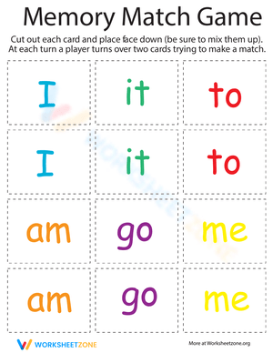 Engage kids in a sight word matching game to improve reading fluency and memory skills! Cut out and play this fun word recognition activity.