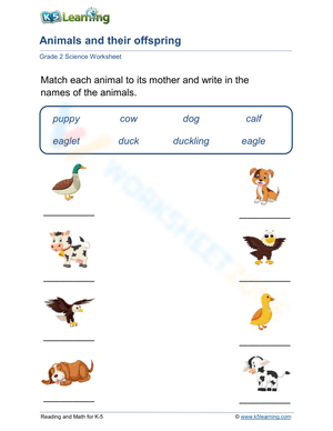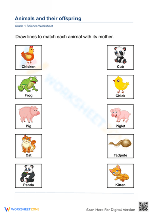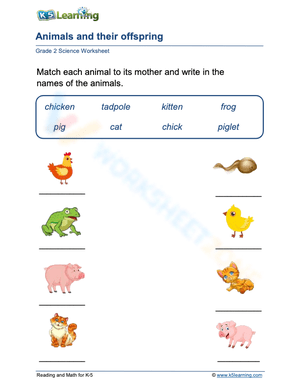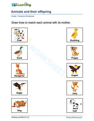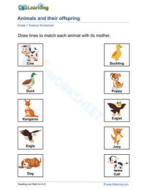 Help kids learn about animals and their offspring with this engaging matching worksheet. Perfect for Grade 1 science lessons or at-home practice.