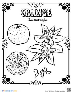 Have you ever wondered what an orange tree's flowers look like? Explore the various stages, from seed to flower to fruit, with this beautiful coloring page featuring "la naranja," which means "orange" in Spanish! Follow the link for more coloring pages featuring fruits in Spanish.