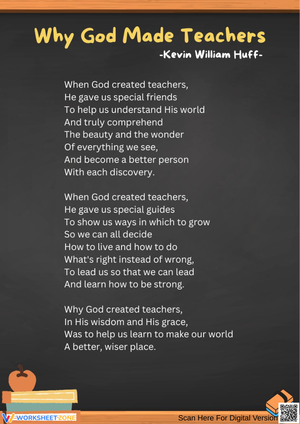 Celebrate the impact of educators with “Teachers” by Kevin William Huff—a printable poem perfect for appreciation, analysis, or display across all grade levels.