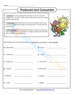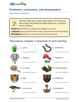 This "Producers, Consumers, and Decomposers" worksheet is designed for Grade 3 students to understand ecological roles and energy flow. Perfect for learning about food chains, ecosystems, and the roles of different organisms in nature.