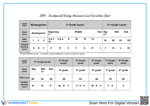 Understand how DRA reading levels align with grade levels from K–8. This helpful chart connects DRA, Basal, and Guided Reading Levels for accurate assessment.<br></br><br></br>