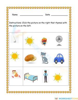 As your students approach the end of their first-grade journey, it's time to put their rhyming skills to the test! This worksheet is designed to evaluate their ability to generate rhyming words based solely on pictures.
