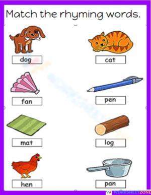 Rhyming words interactive exercise for infant year one. You can do the exercises online or download the worksheet as pdf.