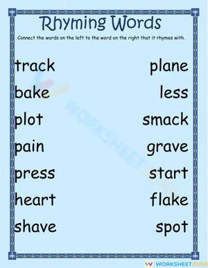 Explore the world of rhyming words with the Rhyme Connection worksheet! Your child will not only connect words that rhyme but also reinforce their meanings through words and pictures. Additionally, they will be challenged to answer a bonus question using one of the rhyming words. This worksheet is part of the Rhyme Connection series, offering a comprehensive and enjoyable way to delve into the world of rhyming. With forty worksheets available, your child can choose to complete just one, a few, or all of them, allowing for a flexible and engaging learning experience.