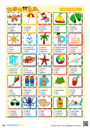 Match summer clothes and have fun! Improve vocabulary and memory with this activity. Perfect for summer learning. Download it now!