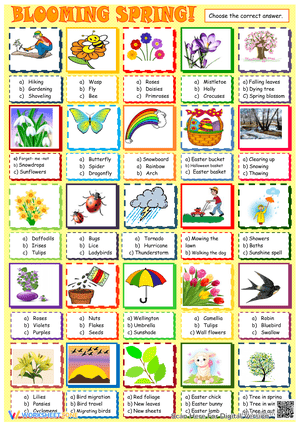 Complete the Spring-themed fill-in-the-blank worksheet to enhance vocabulary and celebrate the season with words.