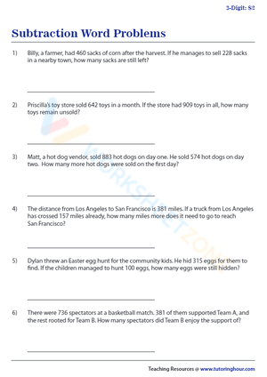 Improve math skills with Subtraction Word Problems! Solve fact-based scenarios and enhance subtraction abilities. Perfect for engaging learning. Try now!