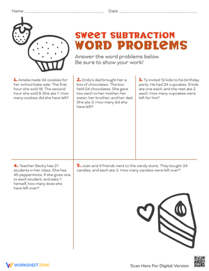 Practice subtraction with these fun, dessert-themed word problems. This worksheet helps students master multi-step math and logic in an engaging way.