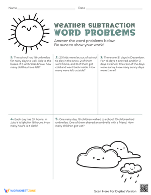 Master subtraction with our word problems worksheet! Perfect for building math skills and problem-solving. Practice subtraction today!