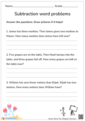 Boost your math skills with our subtraction word problems worksheet! Learn to solve real-world problems effectively. Get started now!