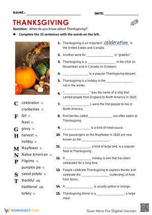 Grammar exercises contextualized within the theme of Thanksgiving.
