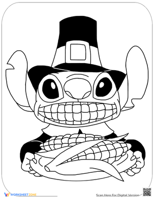 Join Stitch dressed as a pilgrim with this adorable Thanksgiving coloring page! Perfect for Disney fans to celebrate. Download and print for a creative activity!
