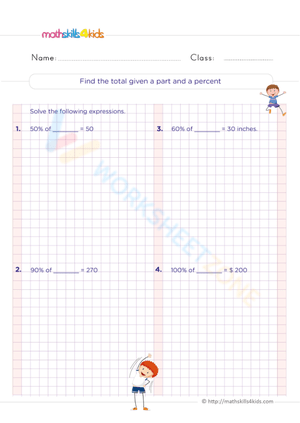 Practice finding the total given a part and a percent with this free printable math worksheet.