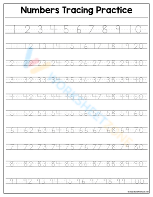 Improve number formation with this Handwriting Practice Worksheet! Focuses on numbers 1 to 100. Perfect for enhancing handwriting skills. Start today!