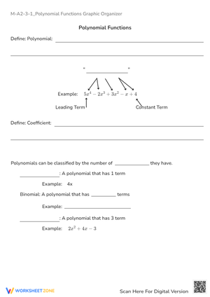 Polynomials online worksheet for 9-12. You can do the exercises online or download the worksheet as pdf.
