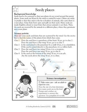 Were these seeds scattered by the wind? In this science worksheet, your child learns about different ways seeds are scattered and uses clues to learn about 5 types of seeds.