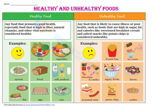 Our printable healthy and unhealthy food worksheets for children are inspired by the idea that while food is important, it's more important to eat healthy. In a world where it's far easier to end up eating junk, it is important to know what is healthy and what isn't. Encourage kids to make informed food choices on what to eat and what not to eat.