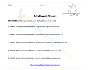 Enhance your skills in identifying nouns in sentences with this practice worksheet. Improve language arts knowledge and descriptive writing today! Download now.