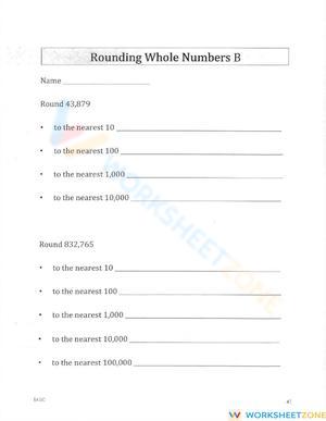 Practice rounding whole numbers! Enhance estimation and approximation skills with this rounding numbers worksheet.