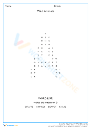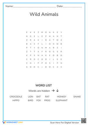 Explore wild animals with this educational worksheet. Enhance vocabulary and understanding of wildlife! Learn today!