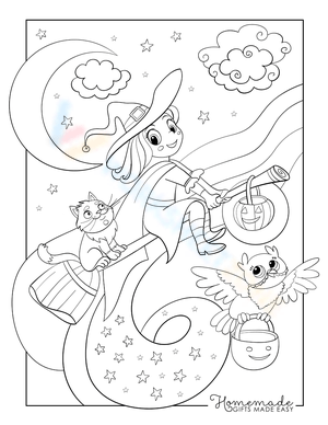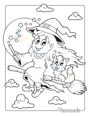 Color a girl witch with this fun Halloween coloring page! A creative activity for all ages. Download now and get into the Halloween spirit!