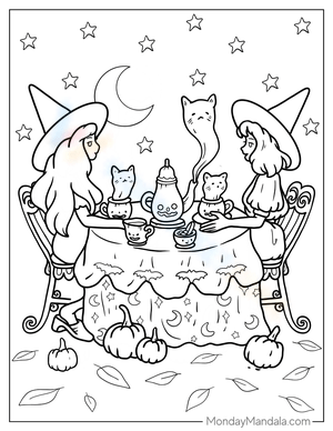 Enjoy our Halloween Witches coloring page! A creative and relaxing activity that enhances fine motor skills with a fun, spooky Halloween theme. Try it today!