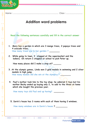 Practice solving word problems related to sums with this free printable math worksheet.