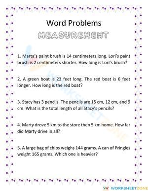 Challenge your problem-solving skills with this word problem worksheet! Apply math concepts to real-world scenarios. Take the challenge now!