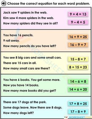 Word problems online worksheet for Grade 1. You can do the exercises online or download the worksheet as pdf.