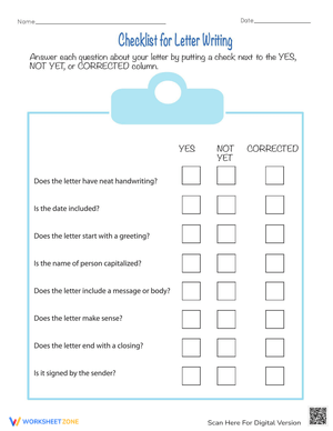 Improve letter writing with this easy-to-use checklist! Students can check off formatting, greetings, closings, and more.