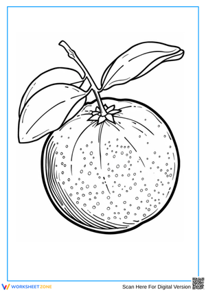 Simple orange coloring page with leaves and stem—great for preschool and kindergarten kids learning about fruits, nature, and healthy eating.